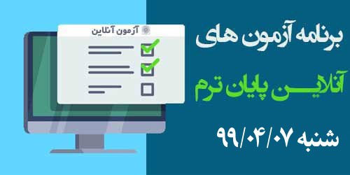 برنامه آزمونهای آنلاین روز نهم شنبه ۷ تیر ۹۹