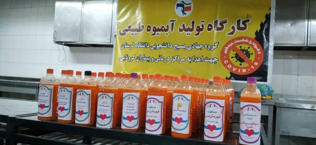 گروه جهادی بسیج دانشجویی دانشگاه لرستان با همکاری دست اندرکاران دانشگاه لرستان، تعداد زیادی آبمیوه طبیعی تولید شده در این کارگاه را در روزهای اخیر در محل بیمارستان شهید رحیمی خرمآباد، جهت استفاده کادر درمان و بیماران کرونایی، توزیع کرد.