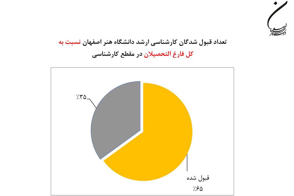 دانش آموختگان مقطع کارشناسی دانشگاه هنر اصفهان با درخشش مثال زدنی توانستند با ۶۵ درصد قبولی نسبت به کل فارغ التحصیلان در مقطع کارشناسی این دانشگاه، بار دیگر در رقابت با دانشجویان سایر دانشگاه ها افتخاری دیگر را برای خود و دانشگاه هنر اصفهان رقم زنند.