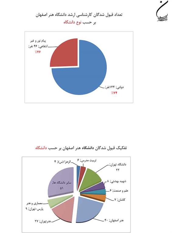 نمودارهای تعداد، درصد، تفکیک بر حسب دانشگاه های پذیرفته شده و جدول اسامی پذیرفته شدگان: