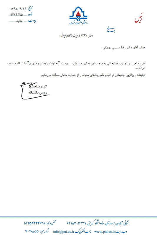 location_onآدرس : حوزه ستادي دانشگاه نشاني: آبادان، بريم، فلكه پتروشيمي، دانشگاه صنعت نفت، كدپستي 61118-63146 (:: دانشكده نفت تهران نشاني: تهران، خيابان ستارخان، بالاتر از برق آلاستوم، انتهاي خيابان 24 متري خسرو جنوبي، ضلع شرقي باشگاه شماره 2 شركت ملي نفت ايران، كدپستي 1453953153 ),(:: دانشكده نفت اهواز نشاني: اهواز